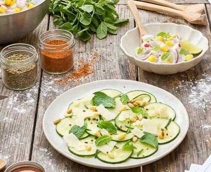 Carpaccio de Courgettes aux pignons de pin